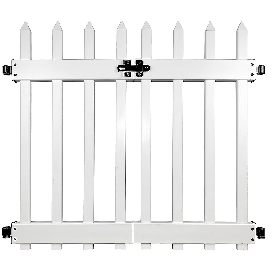 Gate features a weather resistant vinyl finish that will not rust or corrode and stands the test of time and weather, so gate will last for years to come