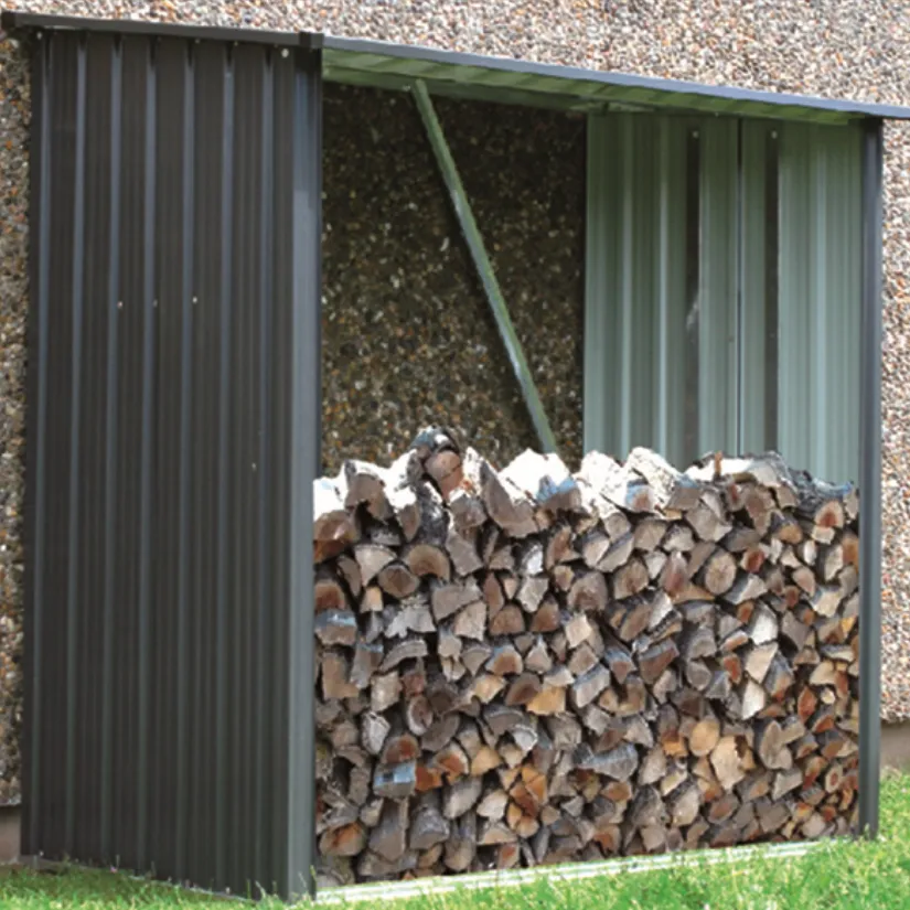 This log storage shed presents a great storage solution for firewood.Asit is made ofgalvanized steel,the firewood storage shed requires minimal maintenance and isvery durable.This log store includes a steel floor frame for added stability and raisedfloor slats to keep the logs ventilated and dry.